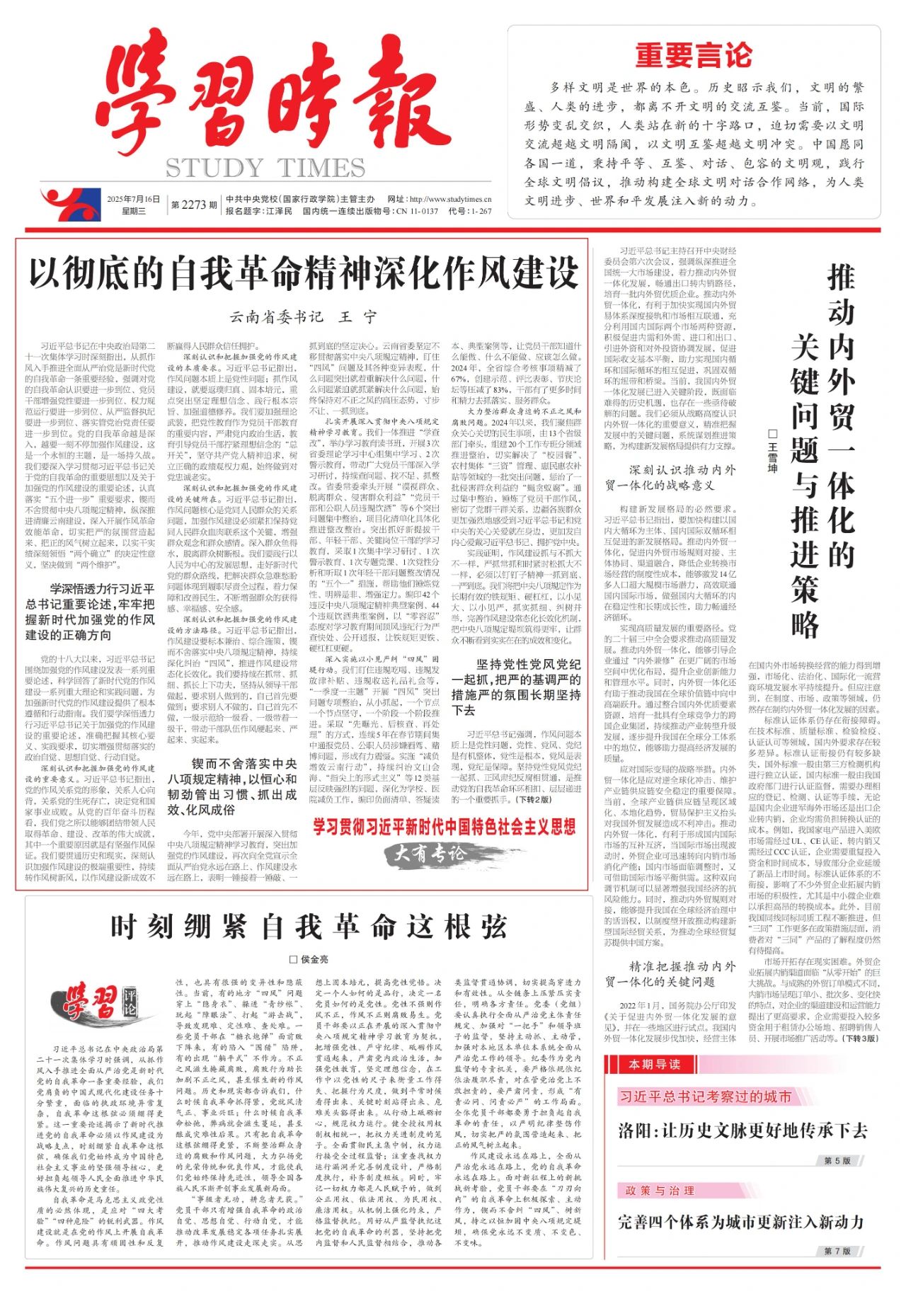 習近平總書記在中央政治局第二十一次集體學習時深刻指出,從抓作風入手推進全面從嚴治黨是新時代黨的自我革命一條重要經(jīng)驗,強調(diào)對黨的自我革命認識要進一步到位、黨員干部增強黨性要進一步到位、權(quán)力規(guī)范運行要進一步到位、從嚴監(jiān)督執(zhí)紀要進一步到位、落實管黨治黨責任要進一步到位。黨的自我革命越是深入,越要一刻不停加強作風建設(shè),這是一個永恒的主題,是一場持久戰(zhàn)。我們要深入學習貫徹習近平總書記關(guān)于黨的自我革命的重要思想以及關(guān)于加強黨的作風建設(shè)的重要論述,認真落實“五個進一步”重要要求,鍥而不舍貫徹中央八項規(guī)定精神,縱深推進清廉云南建設(shè),深入開展作風革命效能革命,切實把嚴的氛圍營造起來、把正的風氣樹立起來,以實干實績深刻領(lǐng)悟“兩個確立”的決定性意義,堅決做到“兩個維護”。