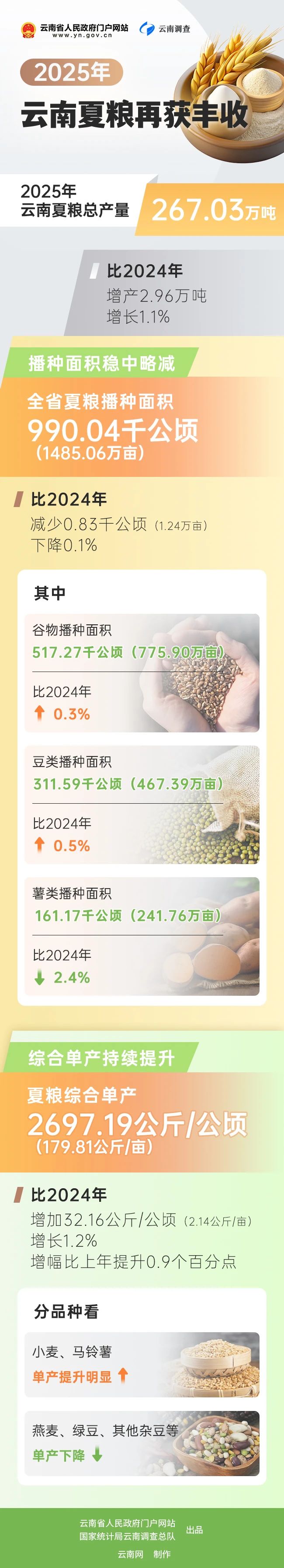 數(shù)讀云南丨總產(chǎn)量267.03萬(wàn)噸!2025年云南夏糧再獲豐收