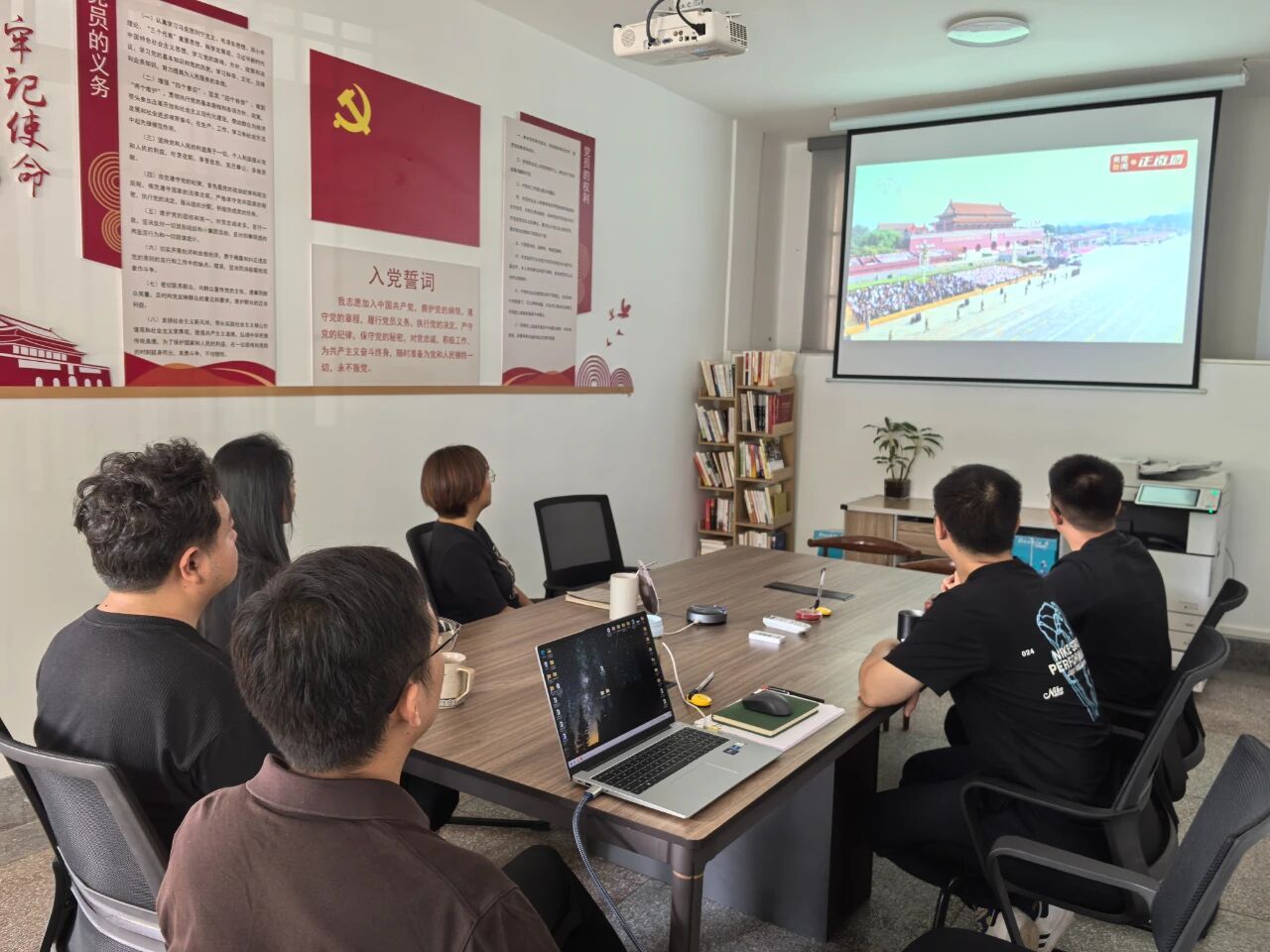 三名年輕同志結(jié)合個人實際分享觀禮感悟:楊紫廷同志談道,鐵血榮光是由革命先烈用鮮血與生命鑄就,在侵華日軍南京大屠殺遇難同胞紀念館,“不為復(fù)仇誓言銘記南京歷史遺訓,為了大愛志愿謀求世界和平永續(xù)”的標語,與閱兵傳遞的“三個必勝”信念一脈相承,更讓她深知和平之珍貴;段國興同志分享了自己的“軍人夢”,雖未能如愿穿上軍裝,但閱兵中大國重器的亮相、徒步方陣鏗鏘的步伐,都讓他真切感受到“鋼鐵長城已鑄就”的安心,他將把這份震撼轉(zhuǎn)化為動力,立足崗位,為“三農(nóng)”事業(yè)添磚加瓦;董定臣同志感慨,新中國成立70周年時曾與幼子一同觀看閱兵,孩子一連串的提問與一句“祖國好厲害”讓他記憶猶新,歷經(jīng)新冠疫情、芯片制裁等挑戰(zhàn)后再看閱兵,國家軍工與經(jīng)濟的突破更顯來之不易,他將以務(wù)實態(tài)度優(yōu)化服務(wù),以崗位行動守護盛世。