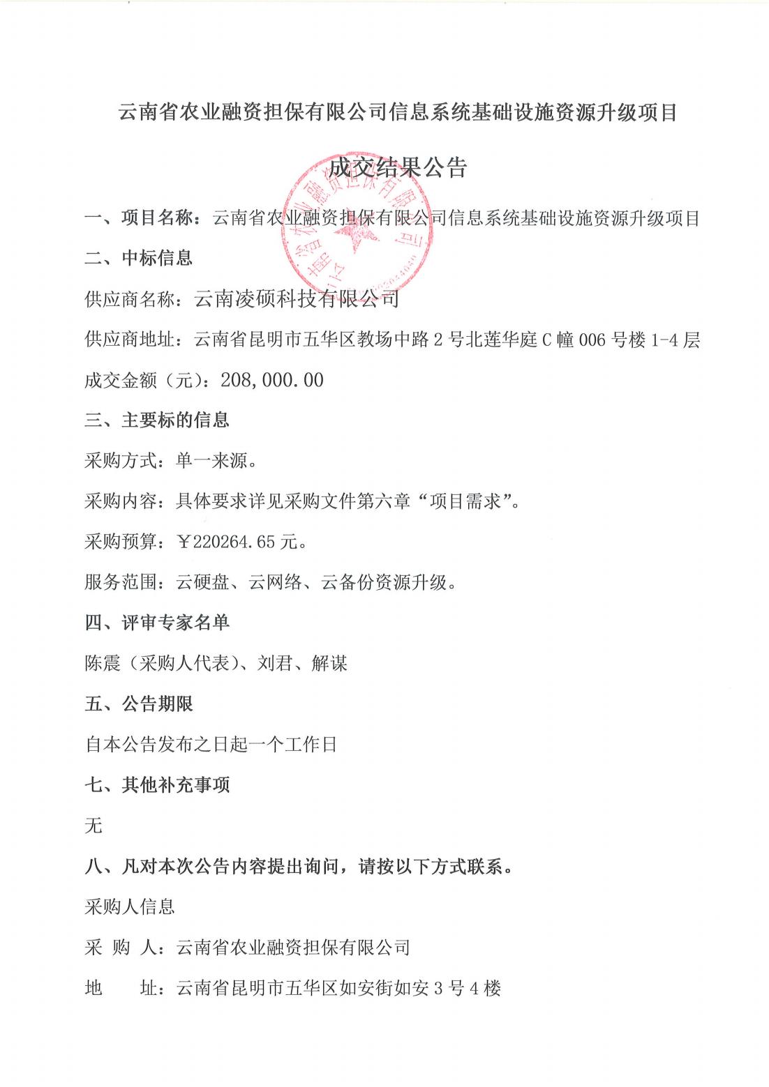 云南省農(nóng)業(yè)融資擔保有限公司信息系統(tǒng)基礎(chǔ)設(shè)施資源升級項目成交結(jié)果公告