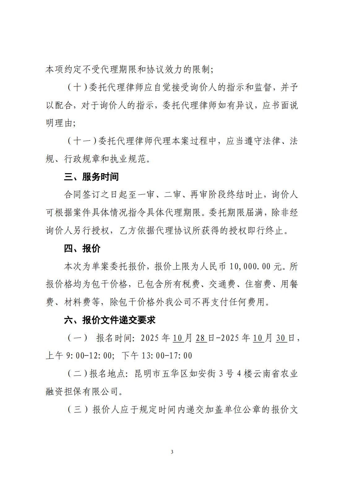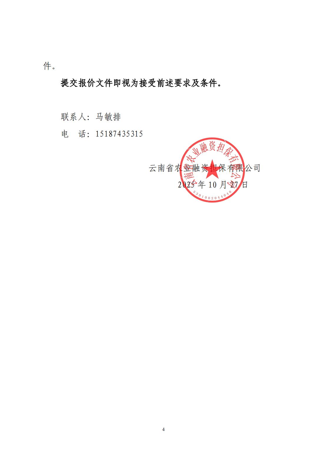 云南省農(nóng)業(yè)融資擔(dān)保有限公司詢價(jià)公告